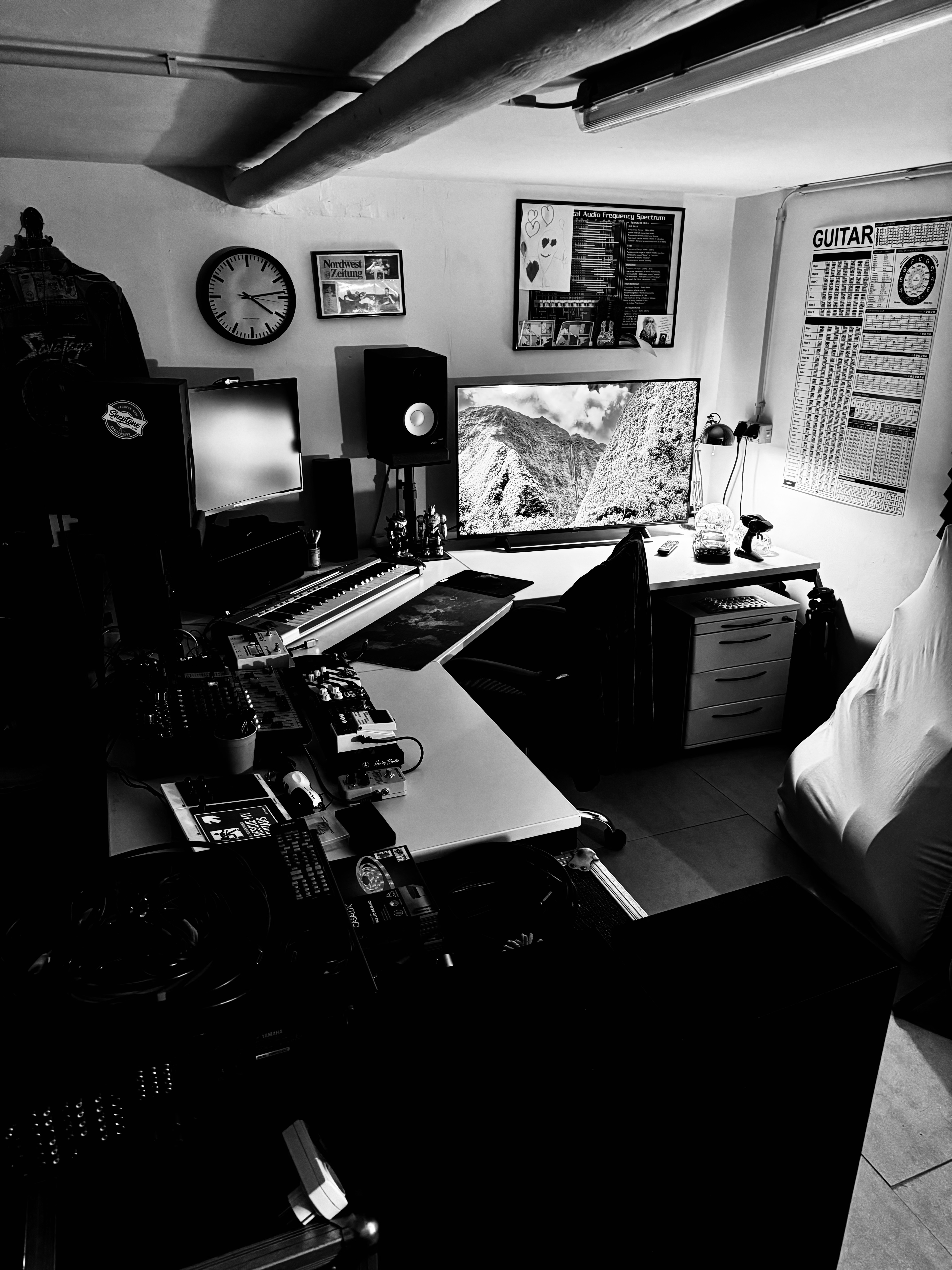 Willkommen im Herzen von EchoVault Studios! Unser modernes Aufnahmestudio im Keller bietet eine inspirierende Atmosphäre mit hochmoderner Ausstattung. Von hochwertigen Mikrofonen und Mischpulten bis hin zu akustischen Paneelen ist alles darauf ausgelegt, deinen Klang perfekt einzufangen. Hier werden kreative Visionen Wirklichkeit.